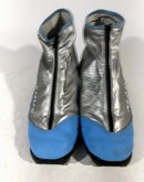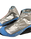 Boots are the most obviously distinctive family of nordic ski boots. They have a 75mm wide "duck bill" at the front of the boot, with three holes on the bottom of the bill that line up with the pins on their appropriate binding.