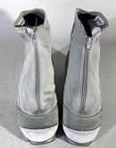 Boots are the most obviously distinctive family of nordic ski boots. They have a 75mm wide "duck bill" at the front of the boot, with three holes on the bottom of the bill that line up with the pins on their appropriate binding.