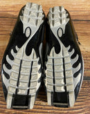 Boots are the most obviously distinctive family of nordic ski boots. They have a 75mm wide "duck bill" at the front of the boot, with three holes on the bottom of the bill that line up with the pins on their appropriate binding.