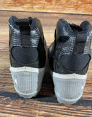 Boots are the most obviously distinctive family of nordic ski boots. They have a 75mm wide "duck bill" at the front of the boot, with three holes on the bottom of the bill that line up with the pins on their appropriate binding.