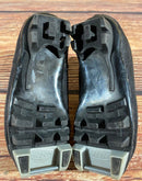 Boots are the most obviously distinctive family of nordic ski boots. They have a 75mm wide "duck bill" at the front of the boot, with three holes on the bottom of the bill that line up with the pins on their appropriate binding.