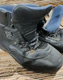 Boots are the most obviously distinctive family of nordic ski boots. They have a 75mm wide "duck bill" at the front of the boot, with three holes on the bottom of the bill that line up with the pins on their appropriate binding.