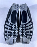Boots are the most obviously distinctive family of nordic ski boots. They have a 75mm wide "duck bill" at the front of the boot, with three holes on the bottom of the bill that line up with the pins on their appropriate binding.