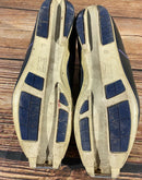 Boots are the most obviously distinctive family of Nordic ski boots. They have a 75mm wide "duck bill" at the front of the boot, with three holes on the bottom of the bill that line up with the pins on their appropriate binding.