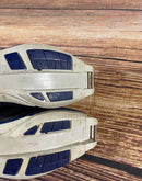 Boots are the most obviously distinctive family of nordic ski boots. They have a 75mm wide "duck bill" at the front of the boot, with three holes on the bottom of the bill that line up with the pins on their appropriate binding.
