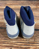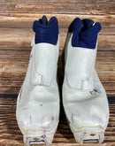 Boots are the most obviously distinctive family of nordic ski boots. They have a 75mm wide "duck bill" at the front of the boot, with three holes on the bottom of the bill that line up with the pins on their appropriate binding.