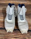 Boots are the most obviously distinctive family of Nordic ski boots. They have a 75mm wide "duck bill" at the front of the boot, with three holes on the bottom of the bill that line up with the pins on their appropriate binding.