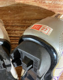 Boots are the most obviously distinctive family of nordic ski boots. They have a 75mm wide "duck bill" at the front of the boot, with three holes on the bottom of the bill that line up with the pins on their appropriate binding.