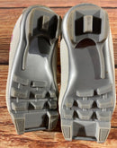 Boots are the most obviously distinctive family of nordic ski boots. They have a 75mm wide "duck bill" at the front of the boot, with three holes on the bottom of the bill that line up with the pins on their appropriate binding.