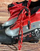 Boots are the most obviously distinctive family of nordic ski boots. They have a 75mm wide "duck bill" at the front of the boot, with three holes on the bottom of the bill that line up with the pins on their appropriate binding.