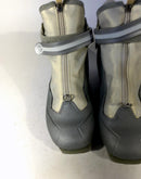 Boots are the most obviously distinctive family of nordic ski boots. They have a 75mm wide "duck bill" at the front of the boot, with three holes on the bottom of the bill that line up with the pins on their appropriate binding.
