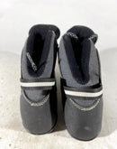 Boots are the most obviously distinctive family of nordic ski boots. They have a 75mm wide "duck bill" at the front of the boot, with three holes on the bottom of the bill that line up with the pins on their appropriate binding.