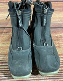 Boots are the most obviously distinctive family of nordic ski boots. They have a 75mm wide "duck bill" at the front of the boot, with three holes on the bottom of the bill that line up with the pins on their appropriate binding.