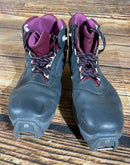 Boots are the most obviously distinctive family of Nordic ski boots. They have a 75mm wide "duck bill" at the front of the boot, with three holes on the bottom of the bill that line up with the pins on their appropriate binding.