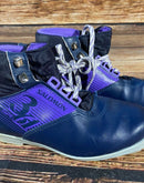 Boots are the most obviously distinctive family of Nordic ski boots. They have a 75mm wide "duck bill" at the front of the boot, with three holes on the bottom of the bill that line up with the pins on their appropriate binding.