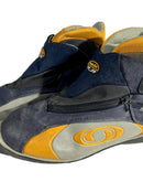 Boots are the most obviously distinctive family of nordic ski boots. They have a 75mm wide "duck bill" at the front of the boot, with three holes on the bottom of the bill that line up with the pins on their appropriate binding.