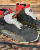 Boots are the most obviously distinctive family of Nordic ski boots. They have a 75mm wide "duck bill" at the front of the boot, with three holes on the bottom of the bill that line up with the pins on their appropriate binding.