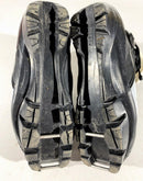 Boots are the most obviously distinctive family of nordic ski boots. They have a 75mm wide "duck bill" at the front of the boot, with three holes on the bottom of the bill that line up with the pins on their appropriate binding.