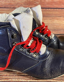 Boots are the most obviously distinctive family of nordic ski boots. They have a 75mm wide "duck bill" at the front of the boot, with three holes on the bottom of the bill that line up with the pins on their appropriate binding.