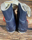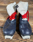 Boots are the most obviously distinctive family of Nordic ski boots. They have a 75mm wide "duck bill" at the front of the boot, with three holes on the bottom of the bill that line up with the pins on their appropriate binding.