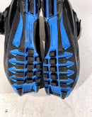 Boots are the most obviously distinctive family of nordic ski boots. They have a 75mm wide "duck bill" at the front of the boot, with three holes on the bottom of the bill that line up with the pins on their appropriate binding.