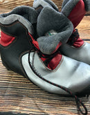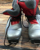 Boots are the most obviously distinctive family of nordic ski boots. They have a 75mm wide "duck bill" at the front of the boot, with three holes on the bottom of the bill that line up with the pins on their appropriate binding.