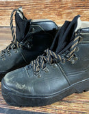 Boots are the most obviously distinctive family of Nordic ski boots. They have a 75mm wide "duck bill" at the front of the boot, with three holes on the bottom of the bill that line up with the pins on their appropriate binding.
