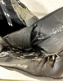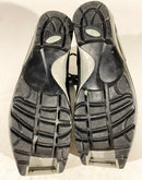 Boots are the most obviously distinctive family of nordic ski boots. They have a 75mm wide "duck bill" at the front of the boot, with three holes on the bottom of the bill that line up with the pins on their appropriate binding.
