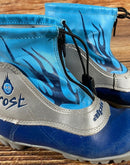 Boots are the most obviously distinctive family of nordic ski boots. They have a 75mm wide "duck bill" at the front of the boot, with three holes on the bottom of the bill that line up with the pins on their appropriate binding.
