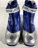 Boots are the most obviously distinctive family of nordic ski boots. They have a 75mm wide "duck bill" at the front of the boot, with three holes on the bottom of the bill that line up with the pins on their appropriate binding.