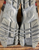 Boots are the most obviously distinctive family of nordic ski boots. They have a 75mm wide "duck bill" at the front of the boot, with three holes on the bottom of the bill that line up with the pins on their appropriate binding.