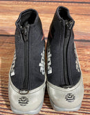 Boots are the most obviously distinctive family of nordic ski boots. They have a 75mm wide "duck bill" at the front of the boot, with three holes on the bottom of the bill that line up with the pins on their appropriate binding.