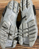 Boots are the most obviously distinctive family of nordic ski boots. They have a 75mm wide "duck bill" at the front of the boot, with three holes on the bottom of the bill that line up with the pins on their appropriate binding.