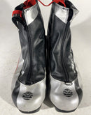 Boots are the most obviously distinctive family of nordic ski boots. They have a 75mm wide "duck bill" at the front of the boot, with three holes on the bottom of the bill that line up with the pins on their appropriate binding.