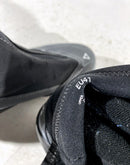 Boots are the most obviously distinctive family of nordic ski boots. They have a 75mm wide "duck bill" at the front of the boot, with three holes on the bottom of the bill that line up with the pins on their appropriate binding.