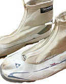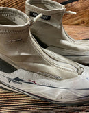 Boots are the most obviously distinctive family of nordic ski boots. They have a 75mm wide "duck bill" at the front of the boot, with three holes on the bottom of the bill that line up with the pins on their appropriate binding.