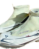 Boots are the most obviously distinctive family of nordic ski boots. They have a 75mm wide "duck bill" at the front of the boot, with three holes on the bottom of the bill that line up with the pins on their appropriate binding.