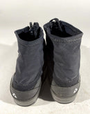 Boots are the most obviously distinctive family of nordic ski boots. They have a 75mm wide "duck bill" at the front of the boot, with three holes on the bottom of the bill that line up with the pins on their appropriate binding.