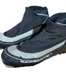 Boots are the most obviously distinctive family of Nordic ski boots. They have a 75mm wide "duck bill" at the front of the boot, with three holes on the bottom of the bill that line up with the pins on their appropriate binding.
