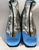 Boots are the most obviously distinctive family of nordic ski boots. They have a 75mm wide "duck bill" at the front of the boot, with three holes on the bottom of the bill that line up with the pins on their appropriate binding.