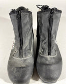 Boots are the most obviously distinctive family of Nordic ski boots. They have a 75mm wide "duck bill" at the front of the boot, with three holes on the bottom of the bill that line up with the pins on their appropriate binding.