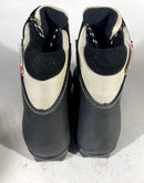 Boots are the most obviously distinctive family of Nordic ski boots. They have a 75mm wide "duck bill" at the front of the boot, with three holes on the bottom of the bill that line up with the pins on their appropriate binding.