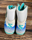 Boots are the most obviously distinctive family of Nordic ski boots. They have a 75mm wide "duck bill" at the front of the boot, with three holes on the bottom of the bill that line up with the pins on their appropriate binding.