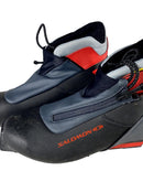 Boots are the most obviously distinctive family of nordic ski boots. They have a 75mm wide "duck bill" at the front of the boot, with three holes on the bottom of the bill that line up with the pins on their appropriate binding.