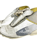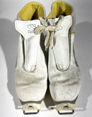 Boots are the most obviously distinctive family of nordic ski boots. They have a 75mm wide "duck bill" at the front of the boot, with three holes on the bottom of the bill that line up with the pins on their appropriate binding.