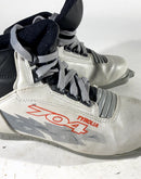 Boots are the most obviously distinctive family of nordic ski boots. They have a 75mm wide "duck bill" at the front of the boot, with three holes on the bottom of the bill that line up with the pins on their appropriate binding.
